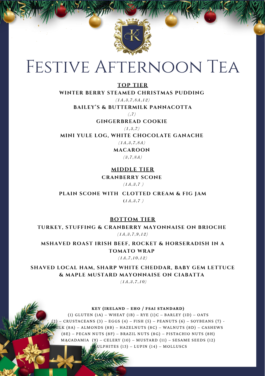 Festive Afternoon Tea is available for the Month of December, served in our newly refurbished Drawing Room, this is the perfect opportunity to kick off the festive Season this year. Festive Afternoon Tea is priced at €40.00 Per Person. Add a Glass of Bubbly for €7.50 Per Person.