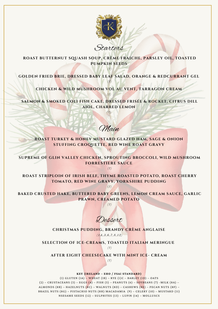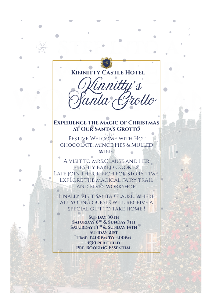 Contact us now for any of your Christmas 2025 enquiries at (057) 91 37318 or reception@kinnittycastlehotel.com